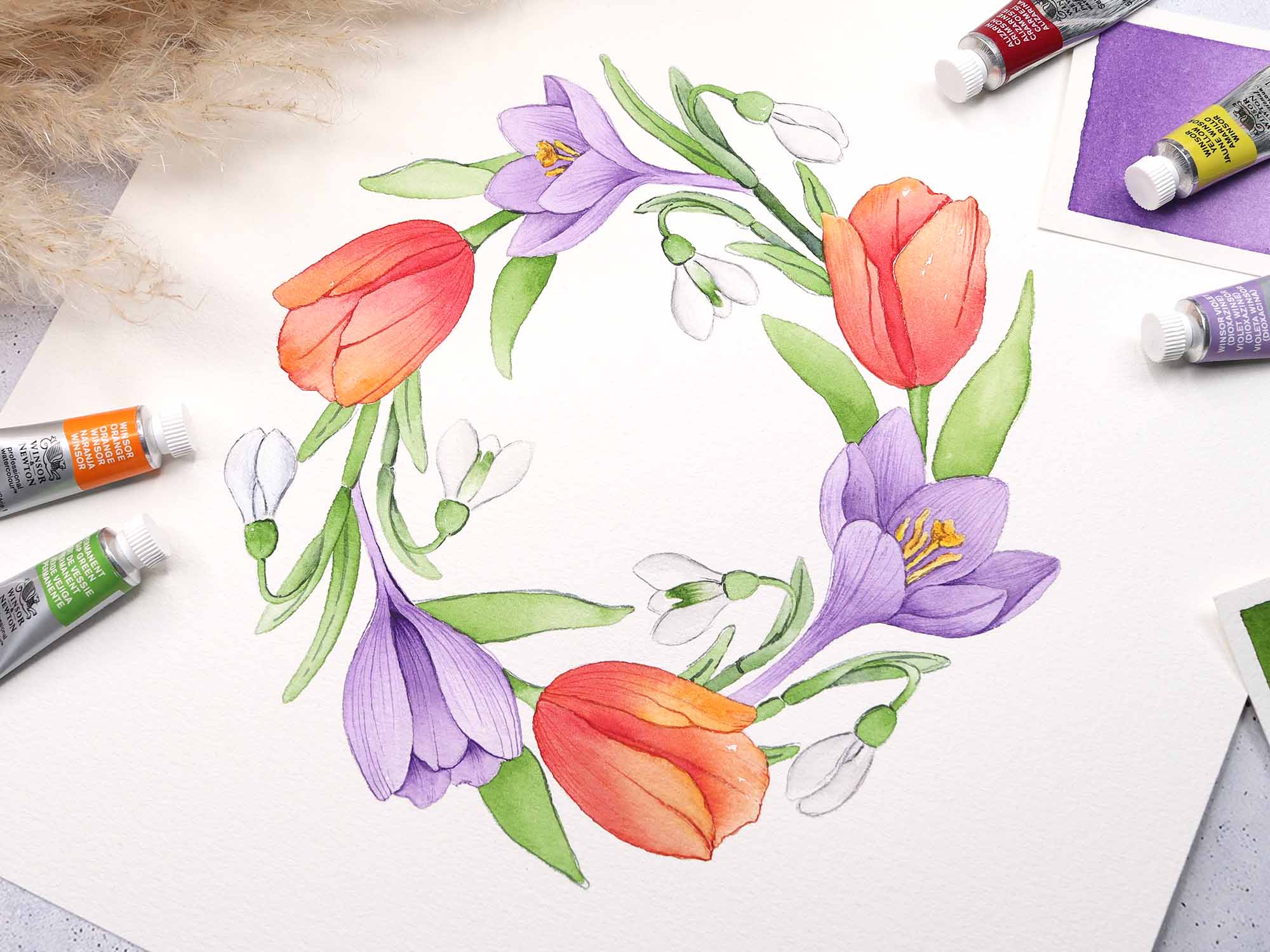 Lass uns gemeinsam bunte Frühlingsblumen in Aquarell malen. Schritt für Schritt zeige ich dir, wie du fröhlich zarte Farbverläufe und feine Details malen kannst, damit du am Ende ein wunderbares selbstgemaltes Bild in den Händen halten kannst.