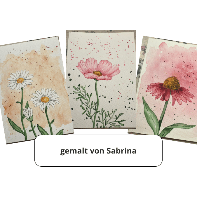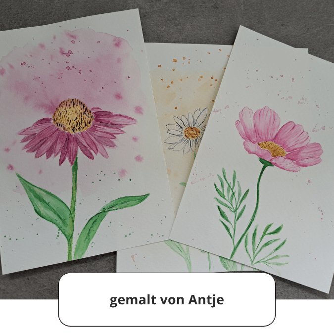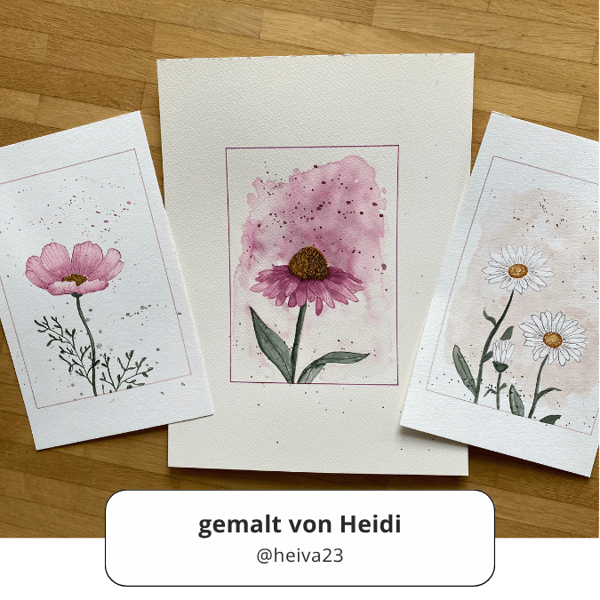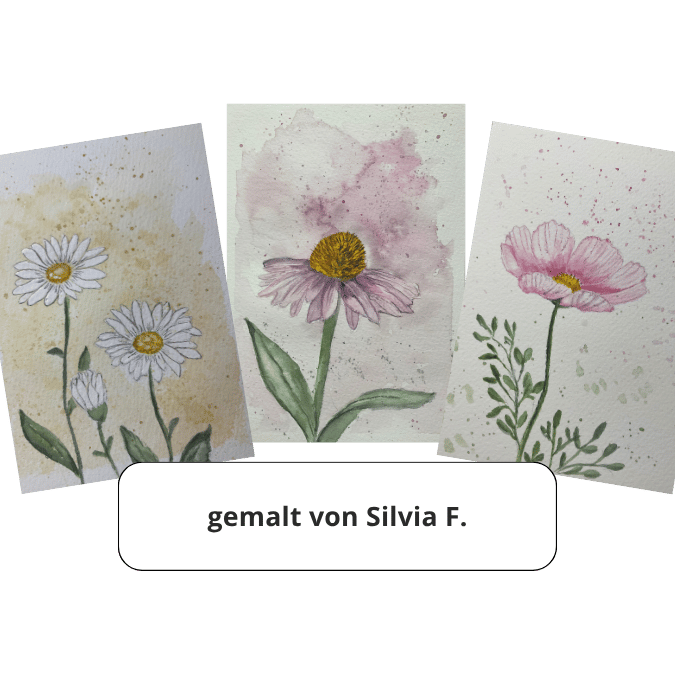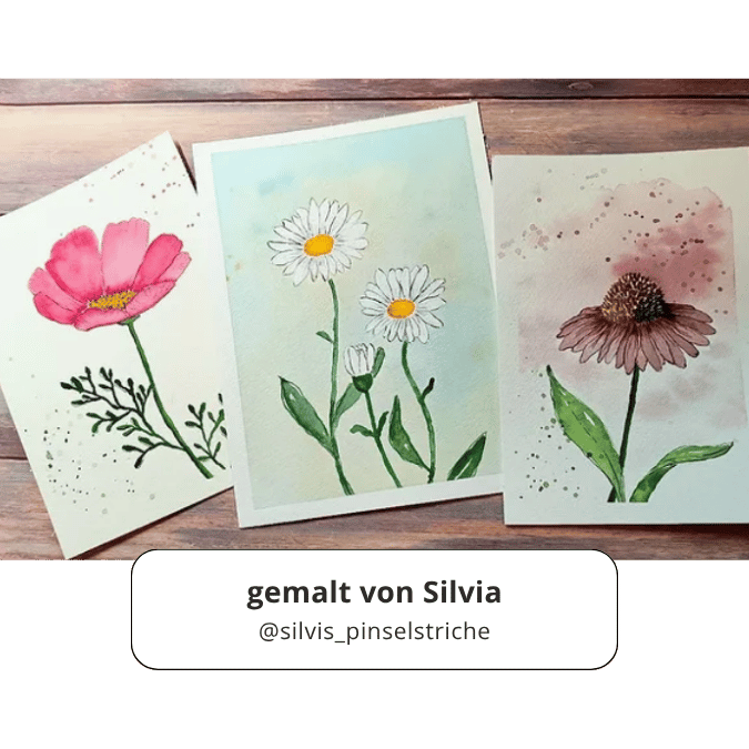 Für den Aquarell-Kurs habe ich Vorlagen erstellt. Du kannst aber auch deine eigenen gezeichneten Sommerblumen verwenden.