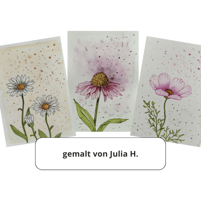 Entscheidest du dich für beide Kurse, bekommst du die maximale Ladung an Kreativität und lernst sowohl das freie Zeichnen mit den Bleistift als auch das Aquarellieren der Sommerblumen.