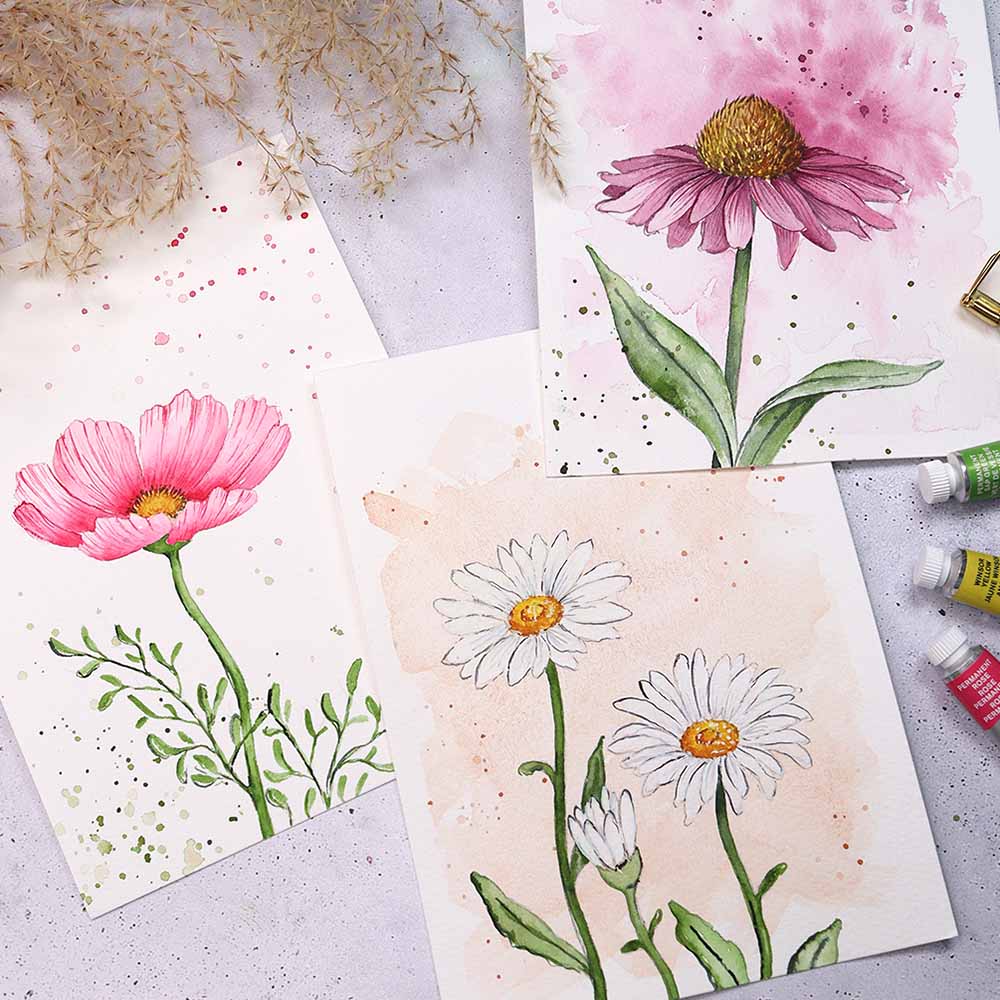 Lass drei Sommerblumen auf deinem Papier Wurzeln schlagen & mit Aquarellfarben Leben einhauchen. Im Kurs zeige ich dir, wie du drei Bilder malen kannst, auf die du richtig stolz sein kannst.