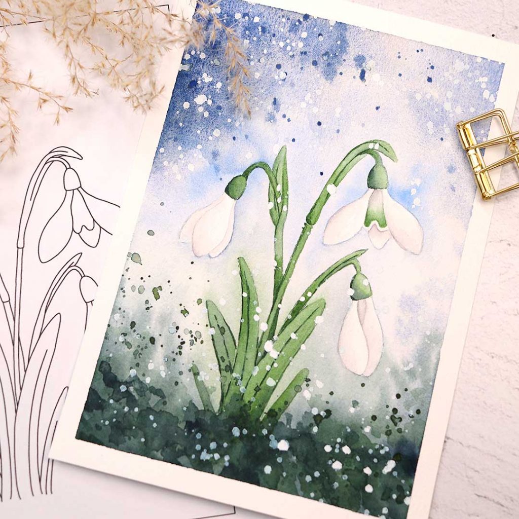 Sei von mir eingeladen, dir Zeit für dich zu nehmen und male mit mir zauberhafte Schneeglöckchen. Ich erkläre dir Schritt für Schritt die wunderbare Nass-in-Nass-Technik und wir gestalten gleich drei Wintermotive, die dich verzaubern werden.